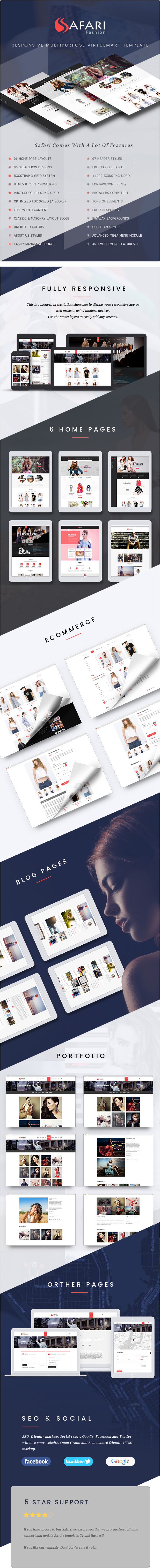 With multiple flexible shortcodes, options, layouts, many header styles, banners, sliders etc. Safari has almost everything you need and adapts easily to most circumstances.